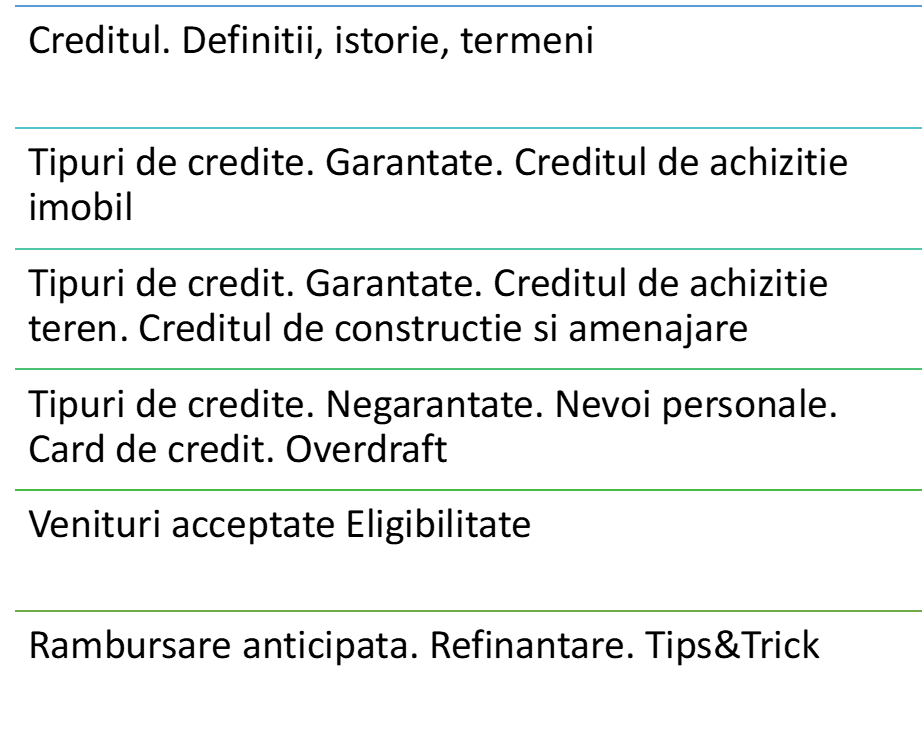 Obiective program training Profil Finante pentru Afaceri – Credite pe intelesul tuturor