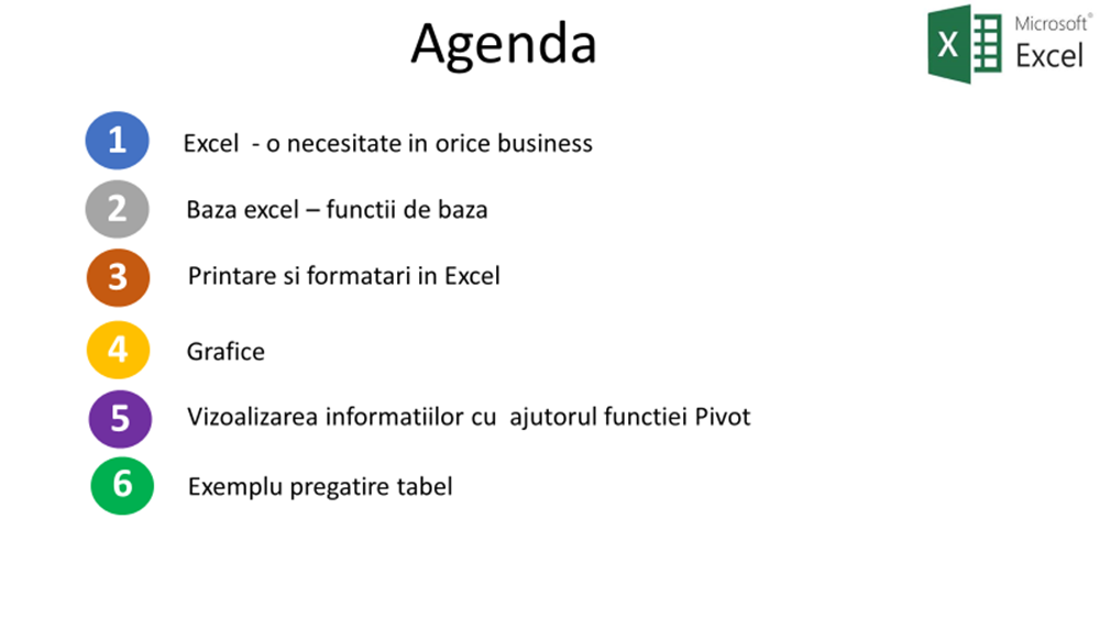 Programul de training isi propune o incursiune in cunoasterea programului Excel, a functiilor de baza, detalierea formatarilor de baza si printarea. De asemenea, trateaza transformarea tabelelor in grafice si in pivoti, oferind exemple edificatoare legate de importanta acestora si cum putem transforma un simplu table in tr-un instrument modern de printat sau prezentat echipelor.