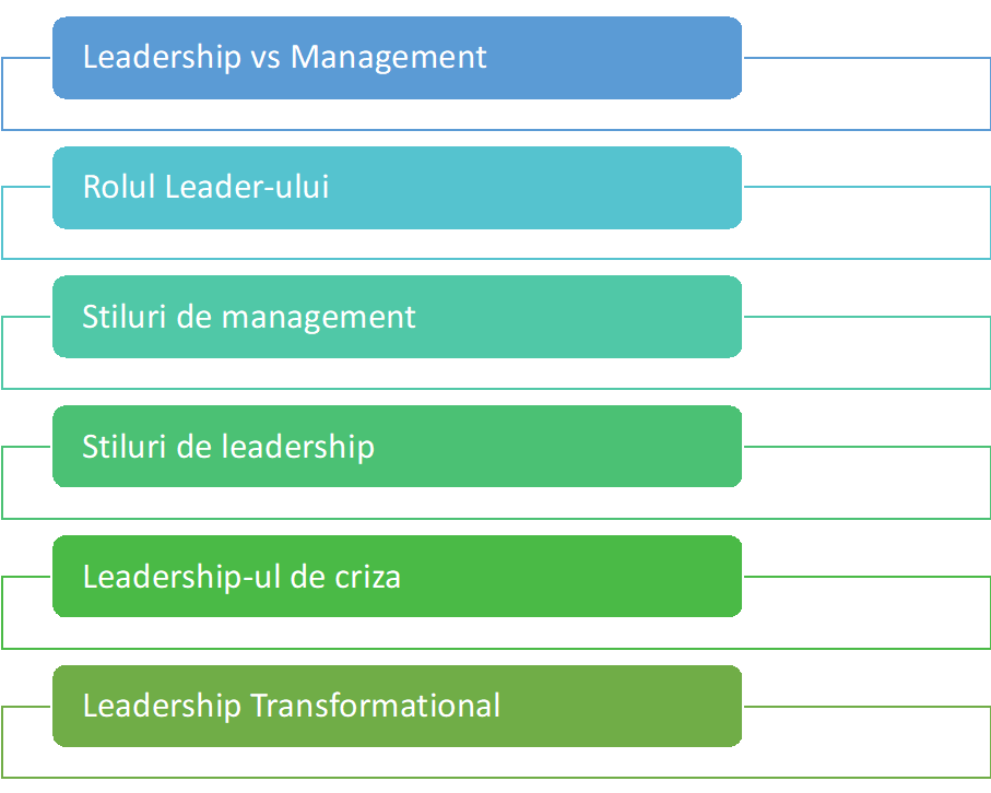 Obiectivul acestei sesiuni de training este de a construi o abordare structurata in procesul de intelgere si aplicare a conceptelor de baza in ceea ce priveste managementul si leadershipul, o metodologie pe care cursantii sa o urmeze pas cu pas.
